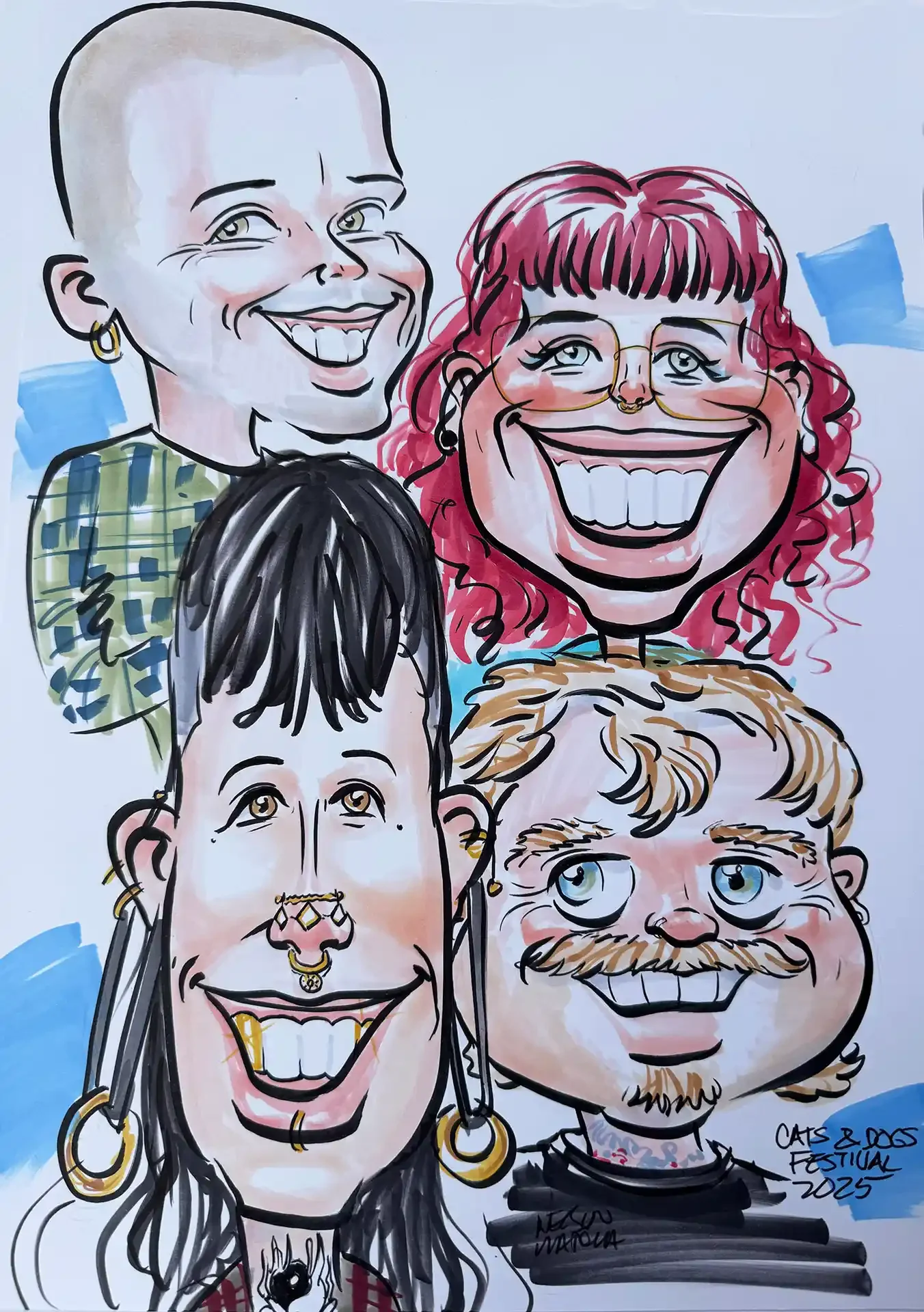 Explore a collection of hand-drawn caricatures of people, each capturing personality, humor, and unique features in bold artistic style. Perfect for anyone looking to commission a custom caricature or get inspired by expressive portrait art.